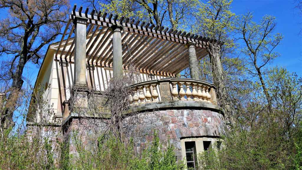 Interessant das Schattenspiel der Pergola auf der rückwärtigen Seite des tempelartigen Pavillons.