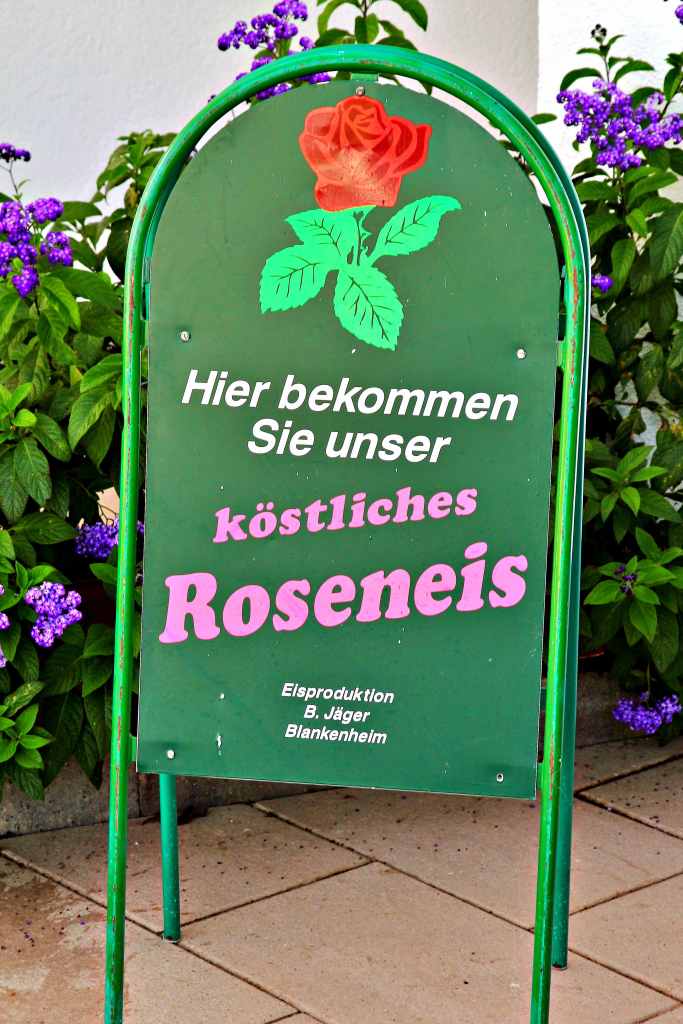 In der Sommerglut – da tut ein Eis gut! Hier, im Rosarium, empfiehlt sich ein Roseneis.