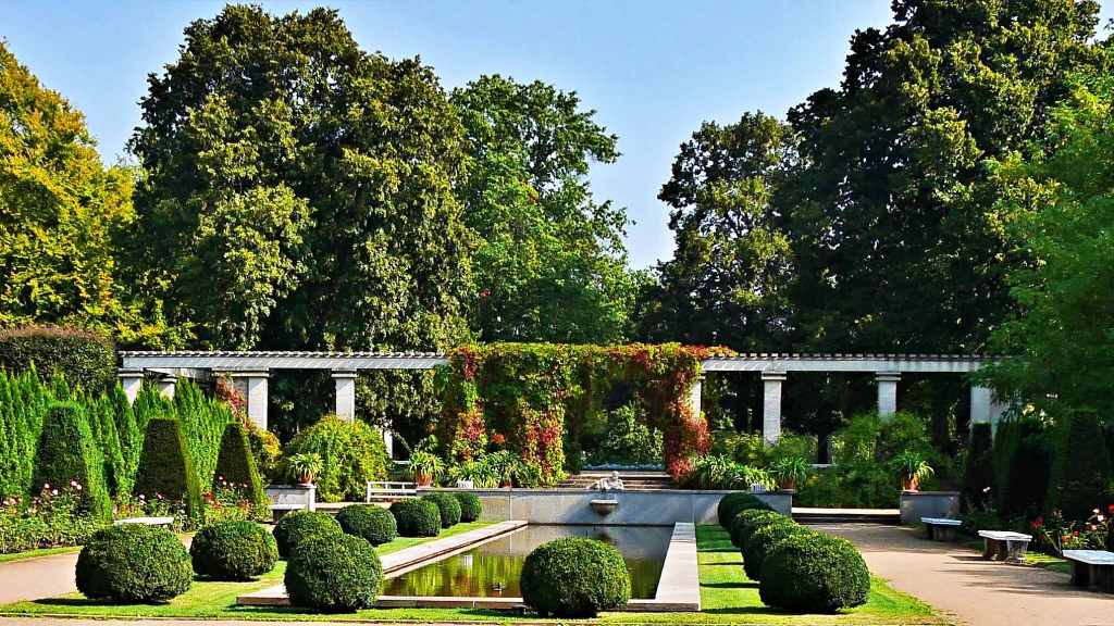 Die Anlage befindet sich auf zwei ehemaligen Flussinseln und ist im englischen Stil gestaltet.