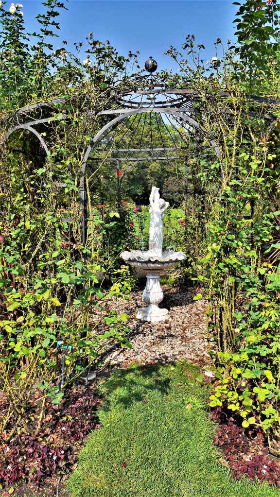 Einzelne Pergolenhöfe und Zierbrunnen wechseln sich ab mit kleineren und größeren Skulpturen. Und, was in Sangerhausen ein Manko ist: hier gibt es Wasser und Wasserspiele. Ist wahrscheinlich der Nähe zum Fluss Neiße zu verdanken.