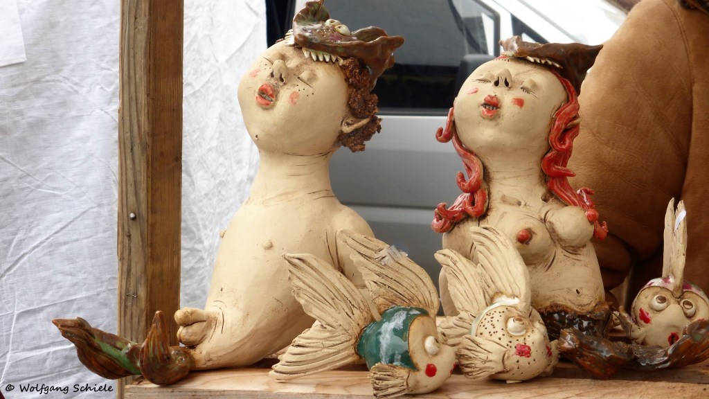 Für mich ist es immer wieder inspirierend, einen Bummel über Kunst- und Keramikmärkte oder durch Kleinkunstausstellungen zu machen. Die Vielfalt menschlicher Phantasie und der Einfallsreichtum von Künstlern und Keramikern regt zum Nachdenken, Wundern und Reflektieren an. Man ist überrascht über die Farben- und Formenfülle, mit der sich die Figuren- und Gefäßschöpfer auseinandersetzen und uns zum Staunen, Stirnrunzeln oder Spekulieren bringen. Und es ist immer wieder frappierend, wie wir als Betrachter die Werke in einen bestimmten Kontext bringen und zu interpretieren versuchen.
