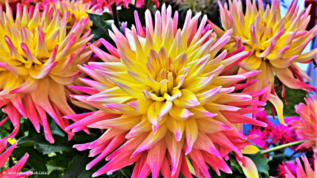 Wussten die schon, dass die Knolle der Dahlien von den Inkas als Nahrungsmittel genutzt wurde und auch noch heute in der mittelamerikanischen Küche Verwendung findet? Des weiteren sind verschiedene medizinische Heilanwendungen bekannt. Die Spanier importierten die Pflanze nicht etwa ihrer Schönheit wegen, sondern hauptsächlich der essbaren Knollen wegen. Bei der Kartoffel war es eher umgekehrt: Ehe man den Nutzen der „Erdknulle“ zu schätzen verstand, erfreute man sich an den schönen Blüten und am üppigen Laub. Erfreuen Sie sich besser an den prächtigen Blüten dieser vielfältigen Pflanze …