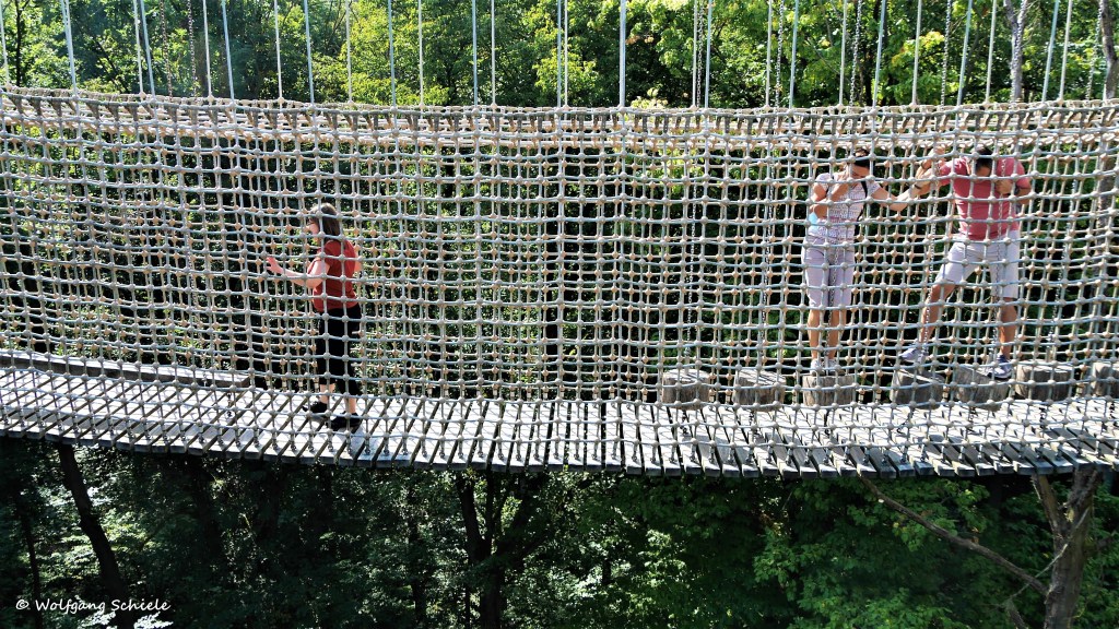 Beim Rundgang auf zwei möglichen Ebenen (10 m und 24 m) bekommt der Besucher Einblicke in das Leben der Bäume hoch oben in seinen Wipfeln und Kronen. Gleichzeitig kann er die Vielfalt der Botanik in einer Höhe nachvollziehen, die ihm sonst verborgen bleibt. Neben den hervorragenden Informationen über Flora und Fauna gibt es an verschiedenen Stellen auch die Möglichkeit, seine Geschicklichkeit zu testen und Kletterübungen zu machen.
