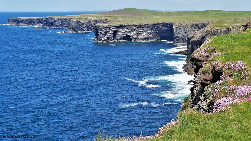 Wir nehmen Abschied von Galway. Das Galway, das sich als letzte Stadt in Europa noch eine Kathedrale gegönnt hat. Auf geht es nun zu den sog. „Burren“, einer steinigen Karstlandschaft, die den Iren einen Nationalpark wert waren. Später begeben wir uns zu den größten Klippen der irischen Insel, den Cliffs of Moher, die jährlich von Abertausenden von Touristen besucht werden und daher völlig überlaufen sind. Unser ortskundiger Fahrer will uns nach dem Pflichtaufenthalt hier noch andere sehenswerte Klippen und Strände zeigen – und er wird meines Erachtens nach Recht behalten mit seiner Auffassung, dass es woanders noch faszinierendere Steilküsten gibt. In der völlig touristenfreien Gegend lässt sich gut wandern und das eine oder andere tolle Motiv aufnehmen.