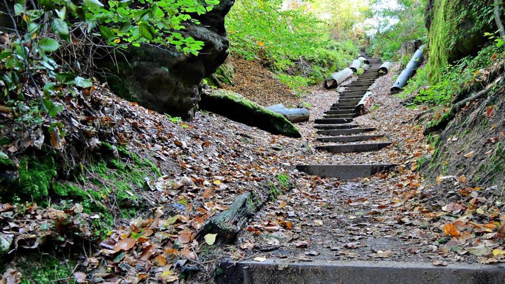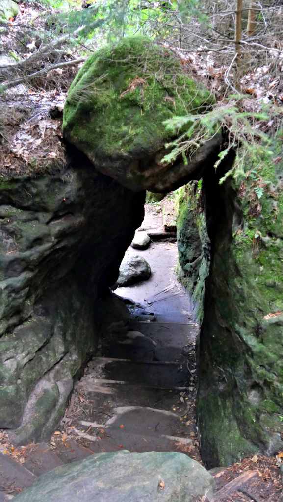 Die Stufen, von denen wir an diesen Tagen wohl mehrere tausend sowohl himmel- als auch erdwärts absolvierten, waren für uns selbst Entschleuniger. Physisch und psychisch. Fast unbewusst hielten wir immer wieder inne – weniger aus Luftnot oder körperlicher Belastung, sondern um das wundersame Drumherum aus Sandsteingebilden und Feuchtmoosen, aus Totholz und Farnen zu genießen. Und immer wieder vom Blick in die Ferne zu entzückenden Details in unserer unmittelbaren Umgebung zu wechseln. Jedes größere natürliche Treppen- und Wegepodest war eine verlockende Einladung, um einen respektvollen Blick ins Rund zu werfen und innere achtsame Einkehr zu halten.