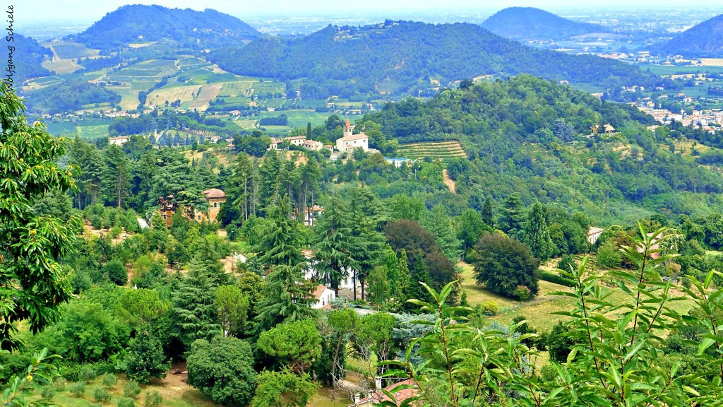 Inmitten der Euganeischen Hügel – einer bewaldeten und teilweise noch aktiven Vulkanlandschaft nahe Padua in Norditalien – befindet sich eine Renaissancevilla, die früher einmal der Sommersitz des Bischofs von Padua war. Besonders wertvoll sind die original erhaltenen Fresken, die aus der Zeit des Kardinals Francesco Pisani stammen. Die Anlage gehört seit 2005 dem italienischen Staat, genauer gesagt der italienischen Stiftung für Denkmal- und Umweltschutz. Ich hatte zwischen Jahren 2014 und 2017 während eines Seminarurlaubs in Abano Terme dreimal das Glück, die Anlage besuchen zu dürfen. Die Euganeischen Hügel wurden übrigens 1989 zum ersten Naturpark der Region Venetien ernannt.
