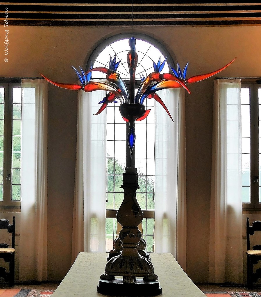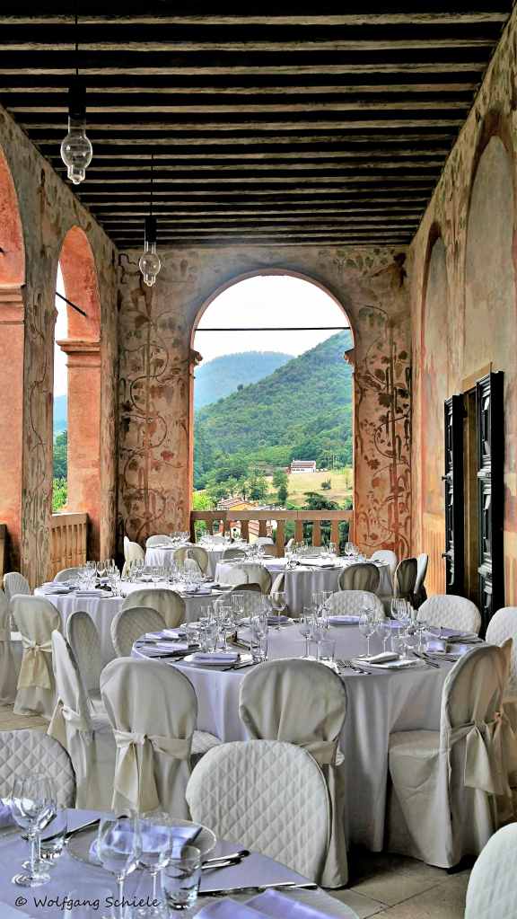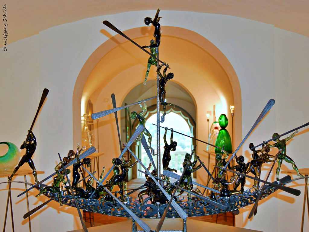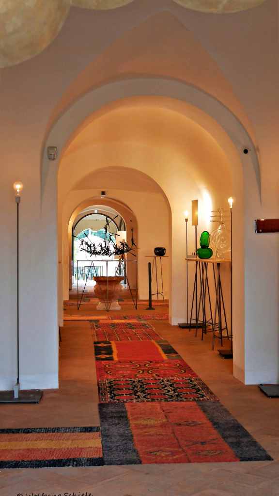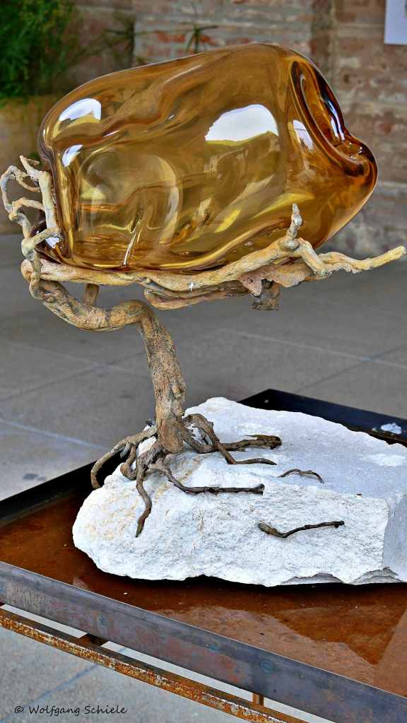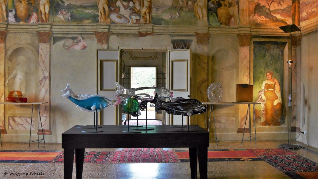 Blick von der höchsten Erhebung der Hügel zu den typischen noch erkennbaren VulkankegelnDie Anlage mit einem ursprünglichen Innenhof war früher ein geistiger Sammelpunkt für literarische und humanistische DenkerIm Sommer des Jahres 2016 war die Villa u. a. Veranstaltungsort einer wunderbaren Glasausstellung …… gleichzeitig warteten die sehr einladend wirkenden Außenterrassen auf ihre Hochzeitsgäste!Ein Höhepunkt war dieses Schiff mit Mannschaft ganz aus Glas
