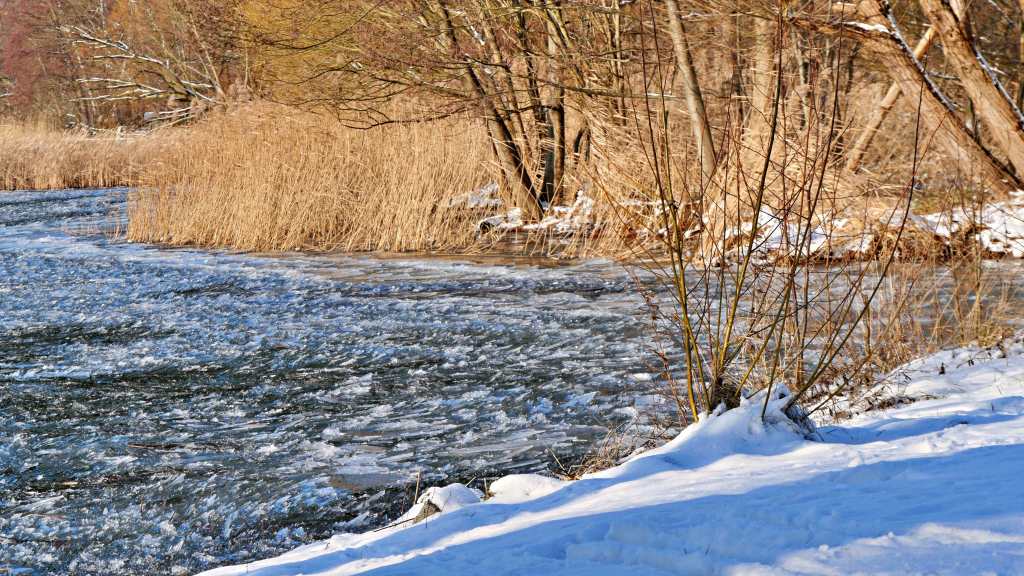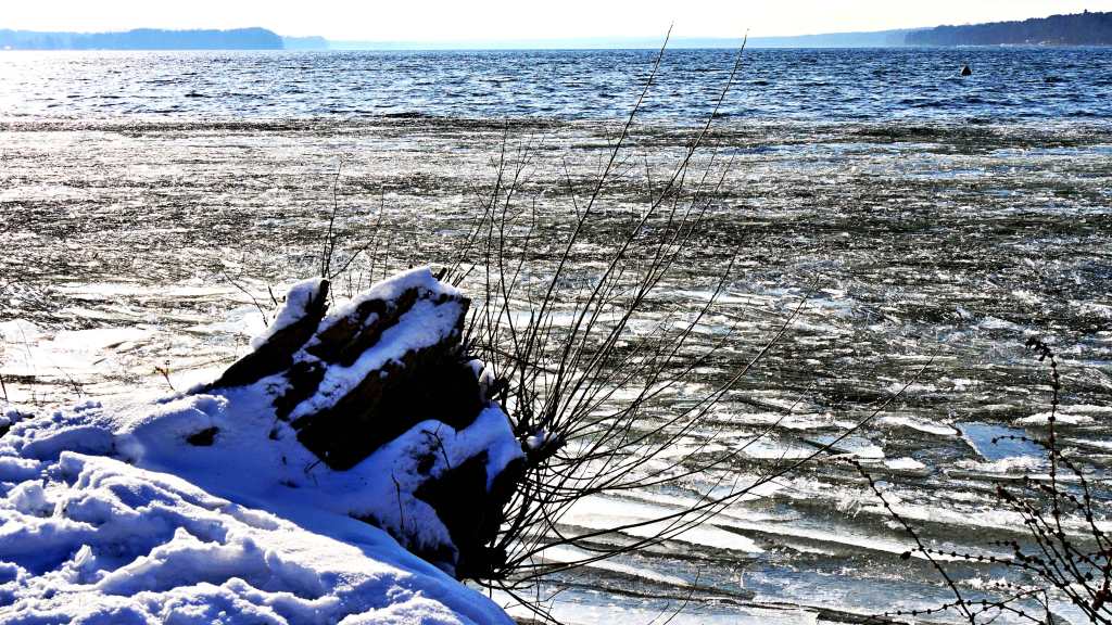 Die Natur vermag uns immer wieder zu verblüffen. Nach einigen eisigen Nächten hatte sich auf dem Scharmützelsee eine dünne Eisdecke gebildet, die durch einen steten und forschen Wind aufriss. Die großen Schollen brachen und trieben als kleine Eisplatten an das Ostufer. wo sie anlandeten und sich aneinander rieben. Durch die vielen kleinen Zusammenstöße, die die schaukelnden Wellen verursachten, entstand eine klirrende und klappernde Melodie, als ob Metallplatten gegeneinander stießen. Neben dem imposanten Schauspiel auch ein bemerkenswertes Hörspiel! Das Eismeer vor der Haustür – und auch ein kleines, unerwartetes Fotoerlebnis. Viel Spaß beim Schauen! Und wer ganz genau hinhört, kann das Scheppern und Klappern der kleinen Eisschollen bestimmt auch hören …