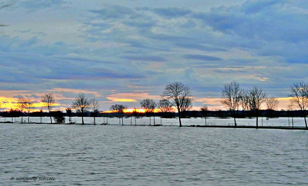Das Jahr 2023 klang nicht überall so aus, wie es sich die Menschen gewünscht hatten. Zumindest nicht dort, wo das Hochwasser mit Beginn des Weihnachtsfestes viele Familien und Existenzen bedrohte. Dieses Mal war ich (fast) mittendrin – am Allerbogen. Die Silvesterparty im dortigen „Allerhof“ war lange geplant – und so standen der Hof und wir am Rande des Wassers und hofften, dass sowohl der Jahreswechsel für uns beschwingt ausklingt als auch die Zukunft der Menschen hier in Niedersachsen gesichert sei … Immerhin bildete der Himmel über dem Wasser Wolkenformationen, die positiv auf die Seele wirkten.