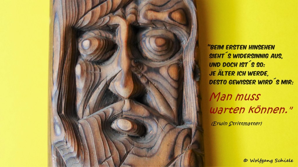 Ob der Schnitzer dieses Baum-Kunstwerkes wohl ähnlich gedacht hat? Ein alterBaum hat das Warten jedenfalls in seinen vielen Lebensjahren gelernt.
