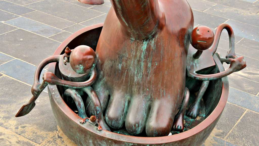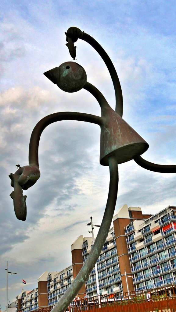 Den Haag ist vor allem berühmt durch seinen etwa 11 km langen Sandstrand. Zum Abschluss der Rundfahrt in Scheveningen können wir uns ein gutes Bild von diesem Strand machen. Dort gibt es das Museum „Beelden aan Zee“, das mit über 600 Skulpturen zeitgenössischer Kunst aus aller Welt für Besucher wirbt. 23 der Skulpturen sind öffentlich auf dem Strandboulevard ausgestellt und können kostenlos bewundert werden. Ein Schnäppchen für Fotografen und mich, der die abstrakten Motive gern mit Zitaten koppelt (Stichwort: Zitatografie).