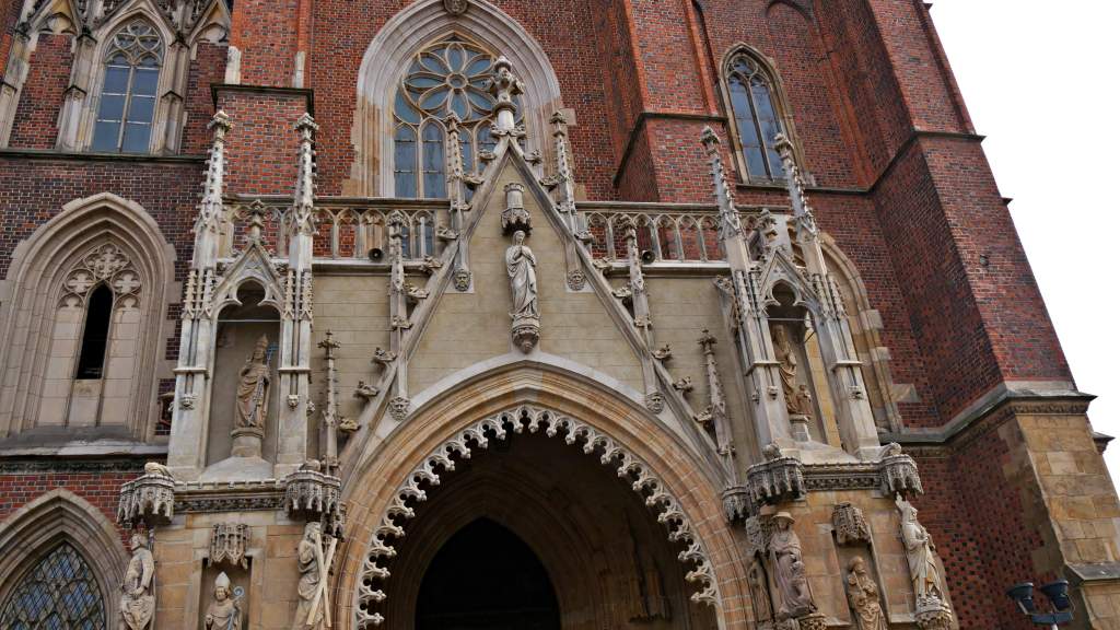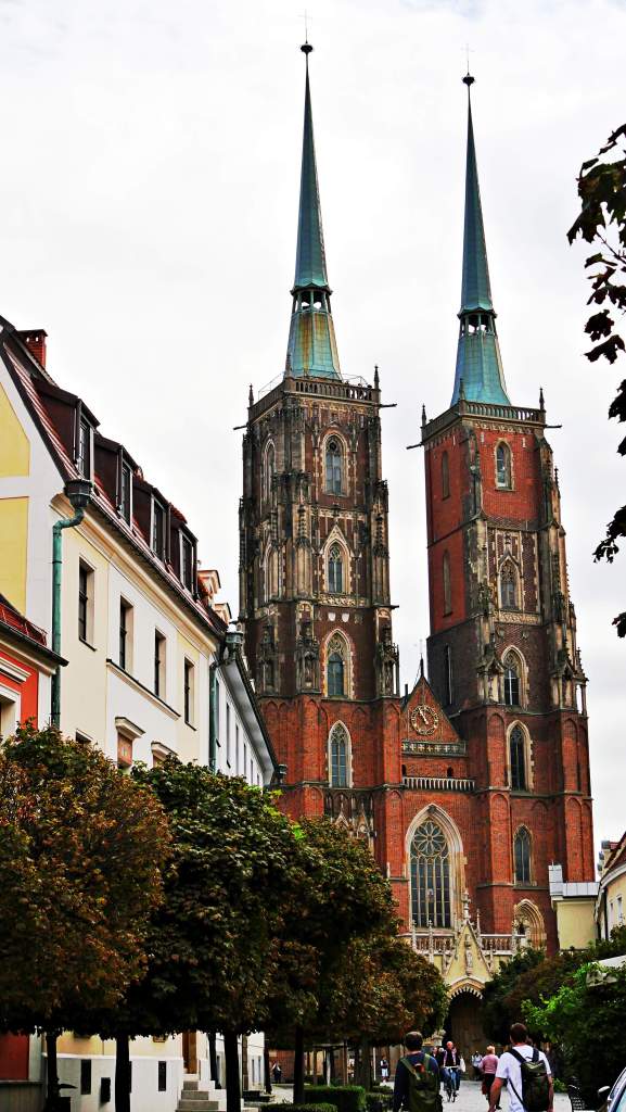 Mitten in der Oder gelegen und von Touris gern besucht: die Dominsel mit insgesamt sechs Kirchen, darunter der Breslauer Dom. Hinzu kommt das erzbischöfliche Palais. Als Titelbild hier das Denkmal des heiligen Nepomuk vor der zweitgrößten Kathedrale, der Kreuzkirche. Dankenswerter Weise war der Andrang erträglich und die Möglichkeit, unbedrängt und unverstellt zu fotografieren, auch gegeben.