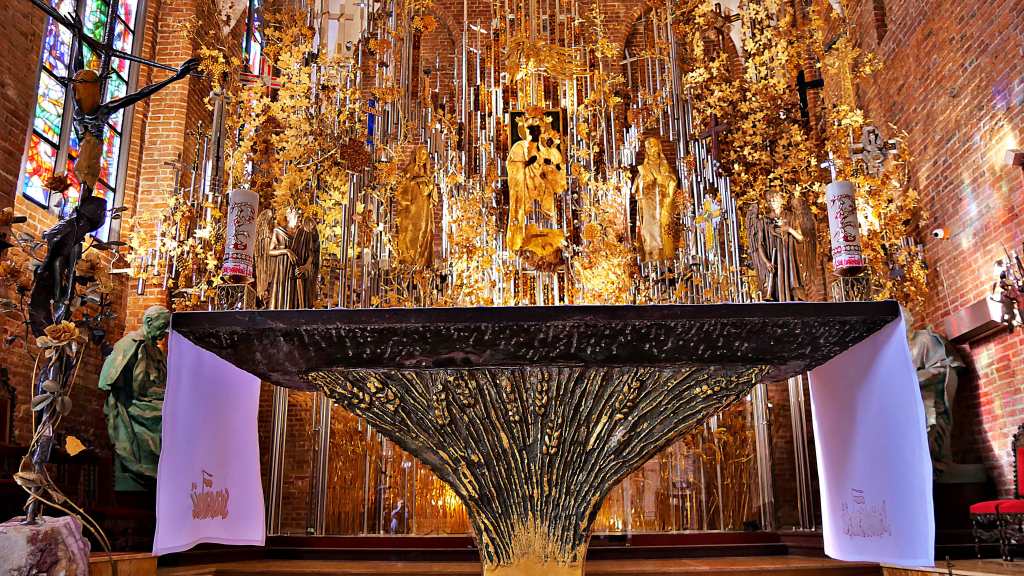 Wie überall in Polen sind auch hier die Kirchenbesuche obligatorisch. Zum einen besuchen wir die unkonventionelle Brigittenkirche, die mit ihrem prächtigen 11 Meter hohen Bernsteinalter als Symbol für die Solidarnosc-Bewegung steht. Zum anderen den Mariendom zu Danzig. Er verfügt statt der Strebepfeiler über Kapellenzeilen, die das Gewicht des Hauses in die Erde leiten. Als besondere Ausstattung sind u. a. der Hochaltar, die Astronomische Uhr und das eindrucksvolle Netzgewölbe hervorzuheben.