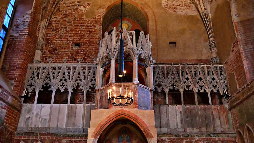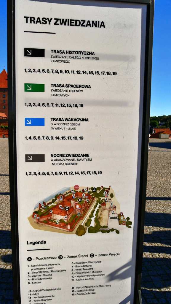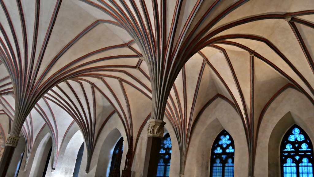 Erwähnenswert ist die für die damalige Zeit schon weitentwickelte Toilettenanlage, die modernen Sanitäranforderungen in nichts nachstand. Imposant der „Domschatz“, den man in einer Ausstellung besichtigen kann, und die grazilen Säulen und Schirmgewölbe des Sommer- und des Winterremters (Remter = Speisesaal). Ich bin beeindruckt – diese Burg ist ein wahrer Höhepunkt unserer Reise!
