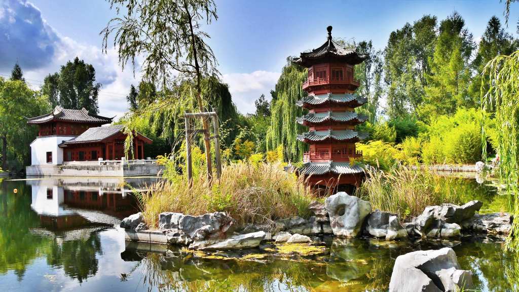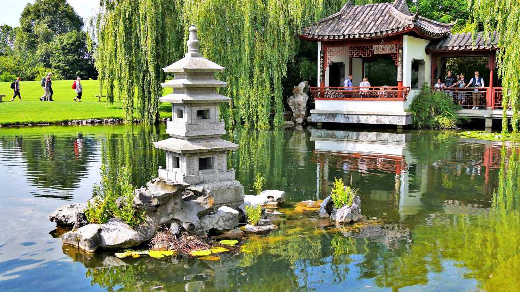 Architekturteile, Marmor, Felsen und Mobiliar wurden in 20 Seecontainern aus China importiert. Auf etwa 2,7 Hektar Fläche kann man sich seit Oktober 2000 ein authentisches Bild über die Kultur und Traditionen des chinesischen Garten- und Landschaftsbaues machen. In weiter zurückliegenden Jahren wurden u. a. Drachenfeste veranstaltet. Aber auch noch heute finden thematische Veranstaltungen statt und man kann im Teehaus Spezialitäten und selbstverständlich Tee aus Fernost genießen.